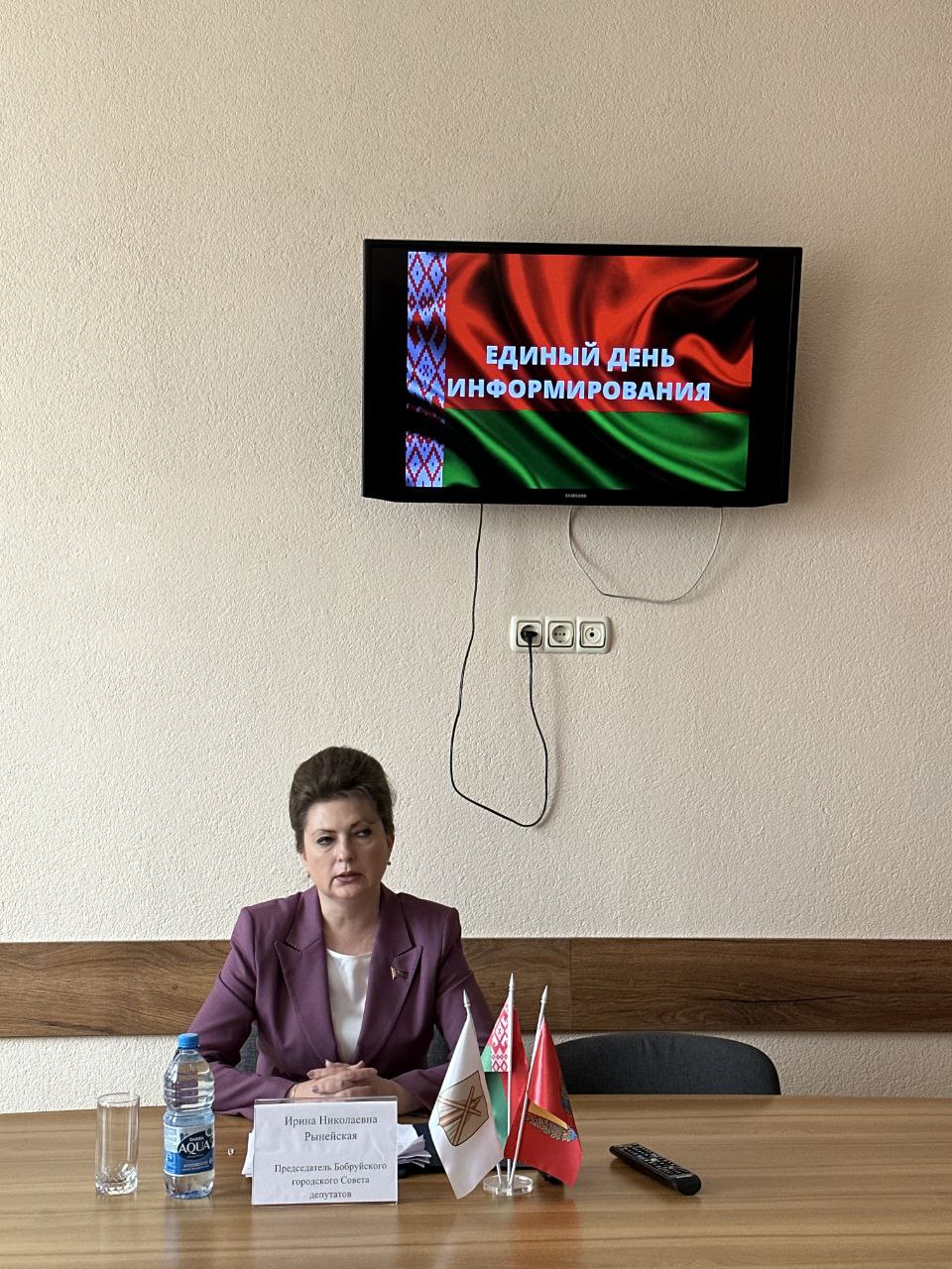 Единый день информирования прошел в ОАО «Бобруйский мясокомбинат», в котором приняла участие председатель Бобруйского городского Совета Депутатов Рынейская Ирина Николаевна, тема встречи – «Образование и наука – движущие силы общества и государства».