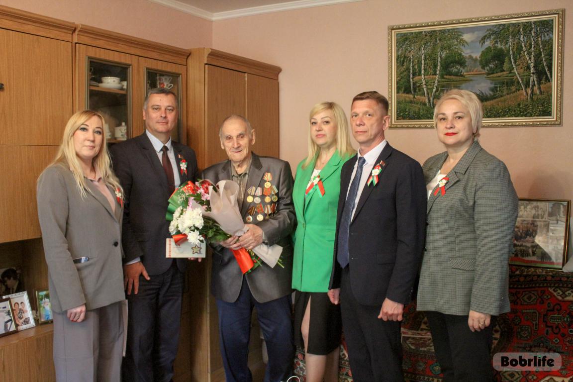 Глава администрации Первомайского района Виталий Власевич представители трудового коллектива ОАО “Бобруйский мясокомбинат” Анна Скрыган и председатель профсоюзного комитета Наталья Рассоха поздравили труженика тыла Германова Анатолия Андреевича с праздником Победы в Великой Отечественной войне.