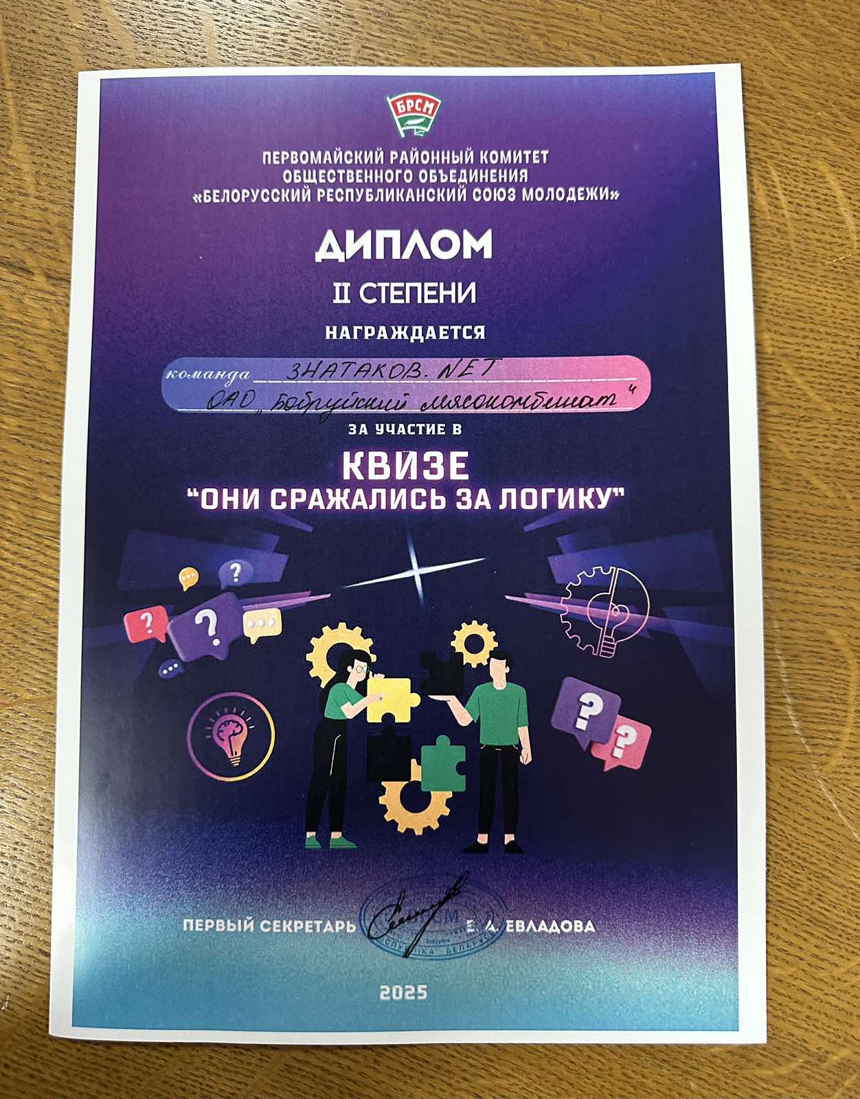 Молодежь ОАО “Бобруйский мясокомбинат” принимала участие в квизе “Они сражались за логику” и заняли второе место!
