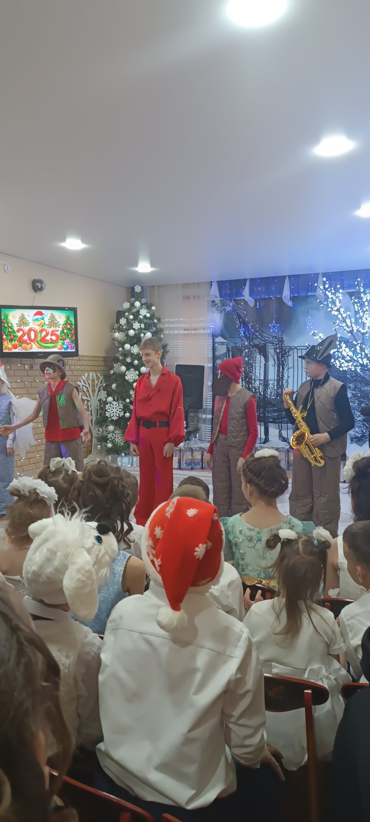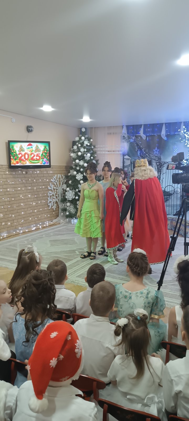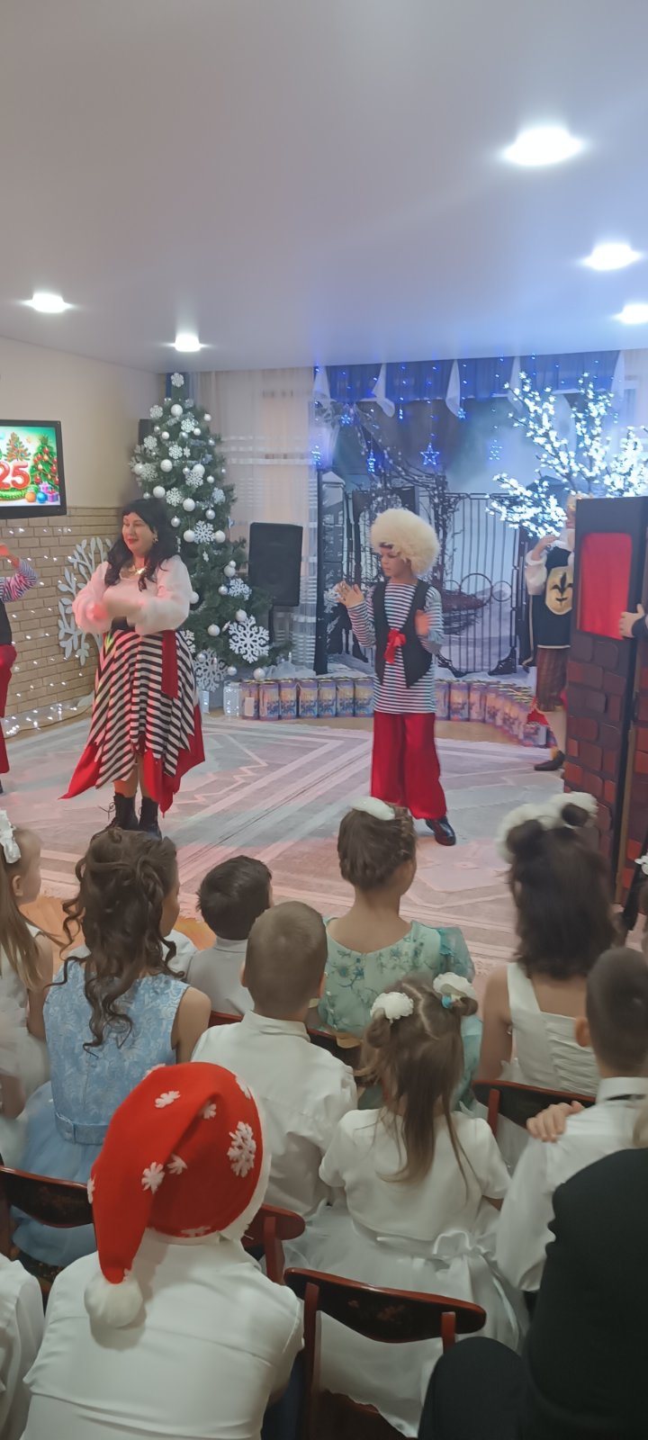 Следующей остановкой в маршруте гостей стал актовый зал. Здесь детям показали сказку «Новогодние фантазии Алисы»…