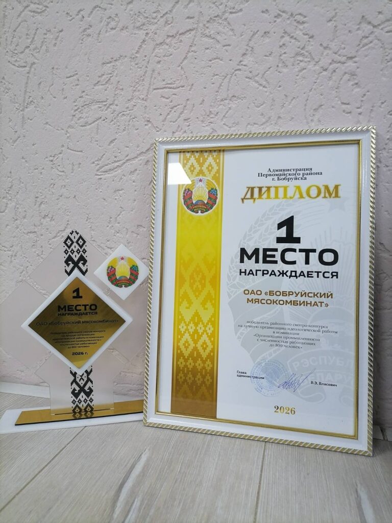 Трудовой коллектив ОАО «Бобруйский мясокомбинат» занял второй год подряд первое место среди промышленных предприятий г. Бобруйска по показателям социально-экономического развития за 2025 год.